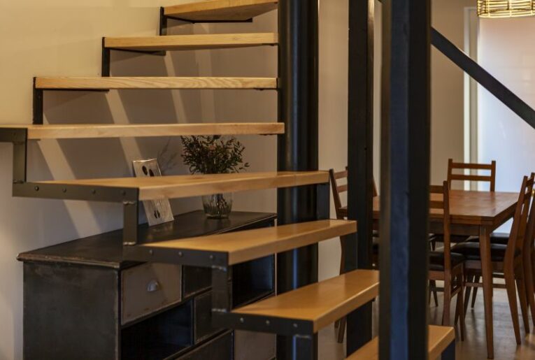 Bureau sur mesure en chêne rouge, il allie fonctionnalité, confort et design. Nous avons joué avec les veinures naturelles de ce bois qui offre un grand contraste de couleurs.