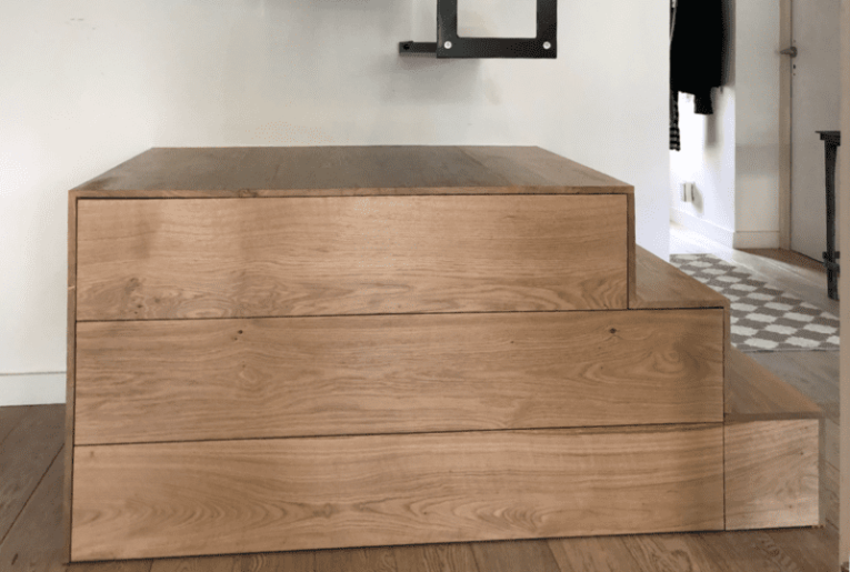 Étagère arbre réalisée en frêne massif afin d'habiller la chambre de bébé à venir.